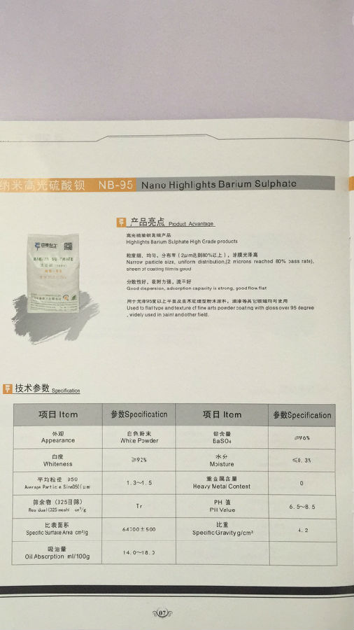 宜昌中泰 纳米高光硫酸钡 NB-95