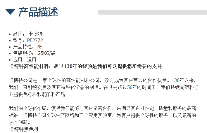 美国卡博特KABOT黑色母粒PE2772原装进*口