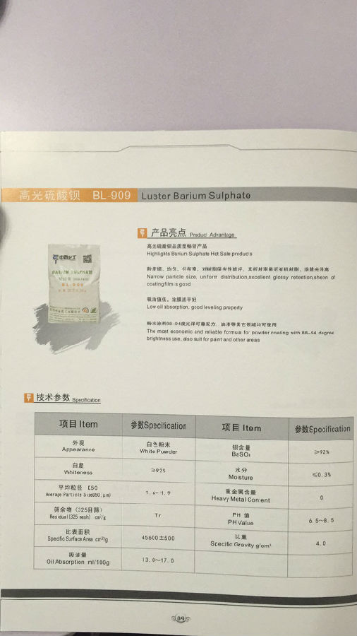 宜昌中泰 高光硫酸钡 BL-909