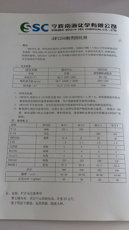 宁波南海GHF2250酚类固化剂