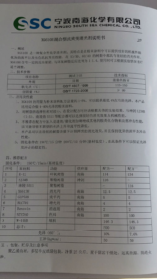 宁波南海XG610H混合型抗黄变消光剂