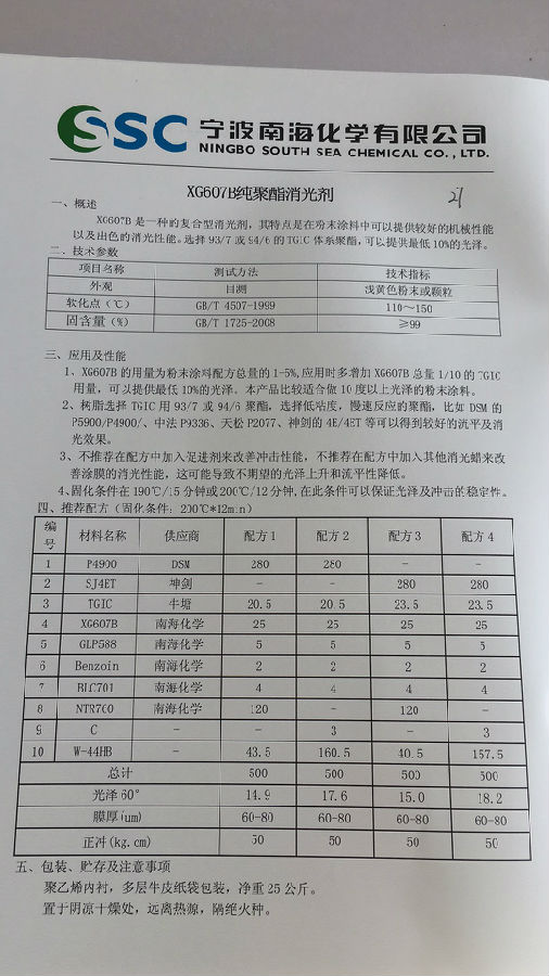 宁波南海XG607B纯聚酯消光剂