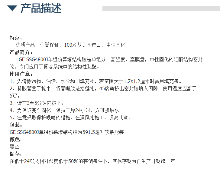GE SSG4800J单组份幕墙结构胶