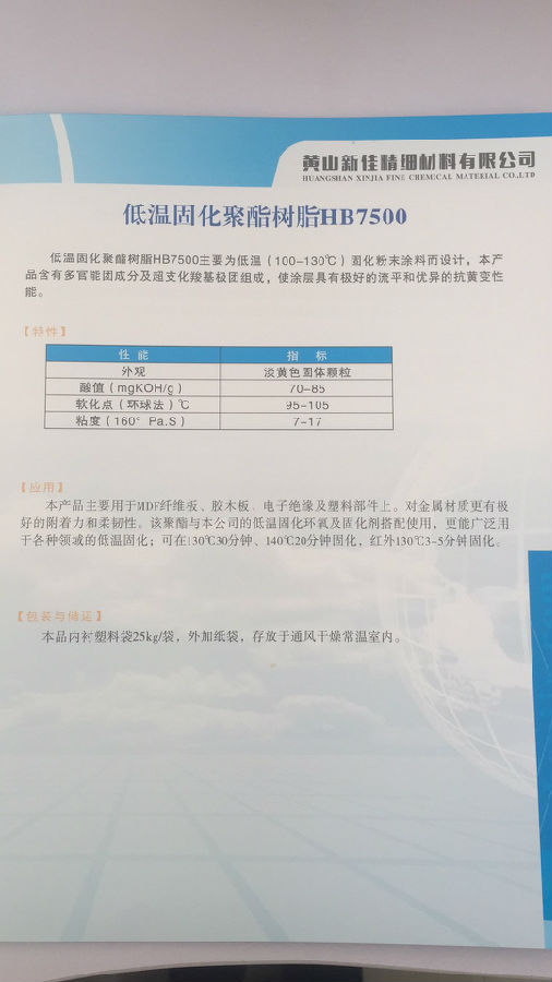 黄山新佳 低温固化聚酯树脂HB7500