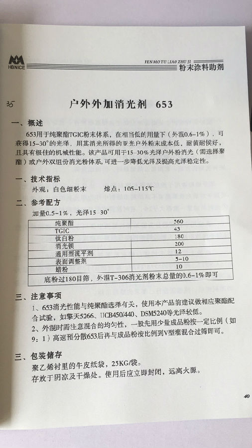 湖北来斯 消光系列 户外外加消光剂 653
