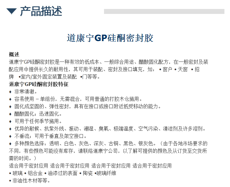 道康宁GP硅酮密封胶