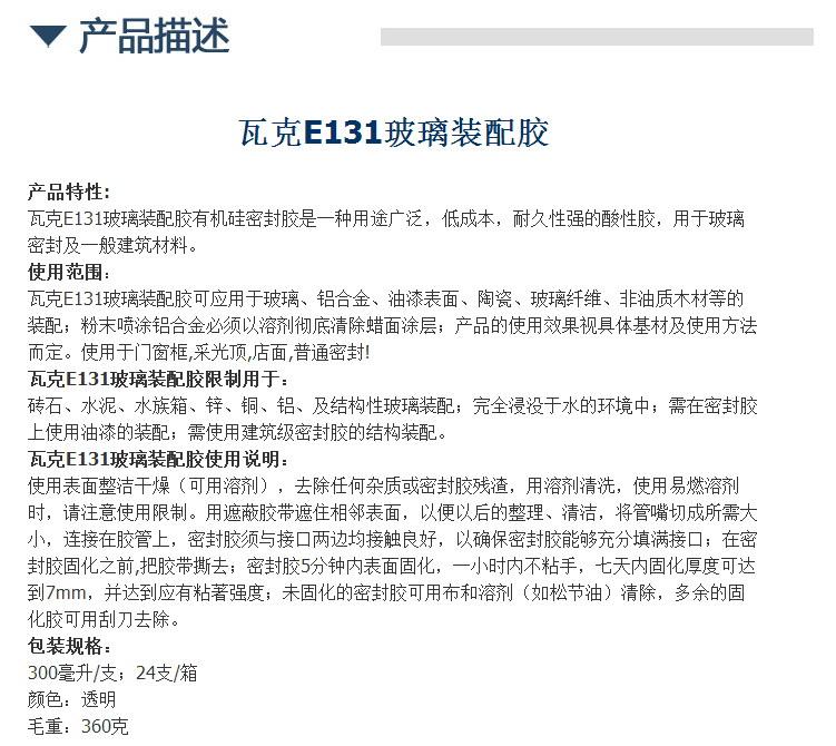 瓦克E131玻璃装配胶