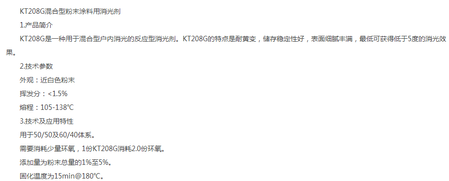 合肥科泰 KT208G混合型粉末涂料用消光剂