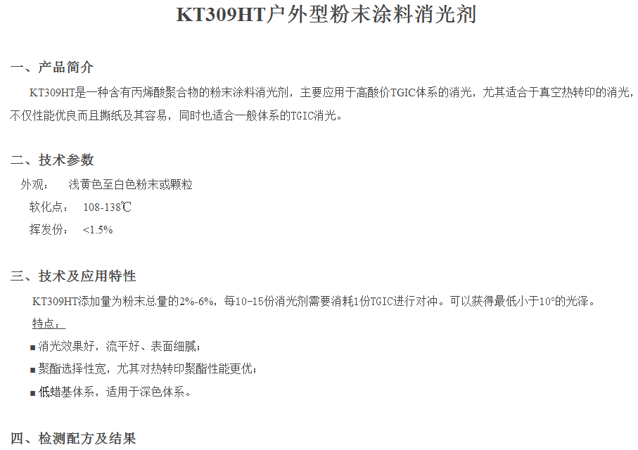 合肥科泰 KT309HT户外型粉末涂料消光剂