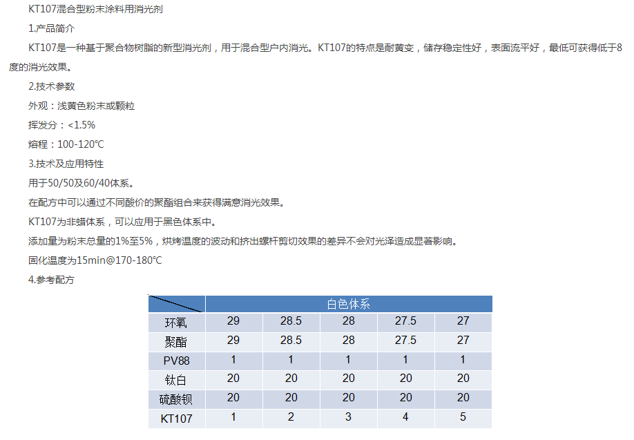 合肥科泰 KT107混合型粉末涂料用消光剂