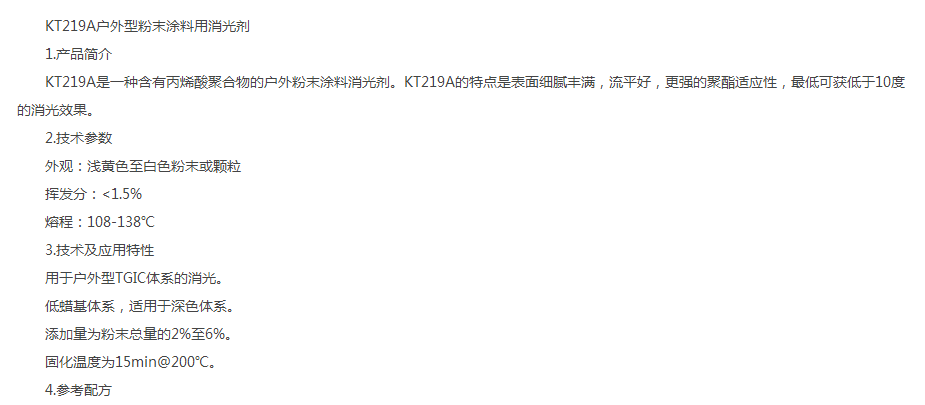 合肥科泰 KT219A户外型粉末涂料用消光剂