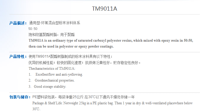 浙江天松 聚酯环氧系列 通用型50:50饱和羧基聚酯树脂 TM9011A