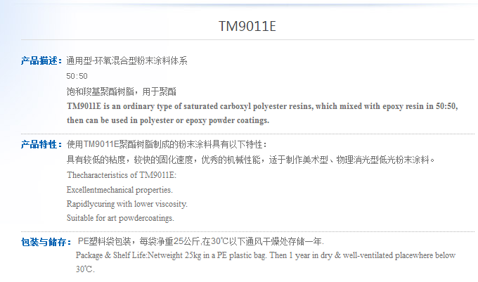 浙江天松 聚酯环氧系列 通用型50:50饱和羧基聚酯树脂 TM9011E