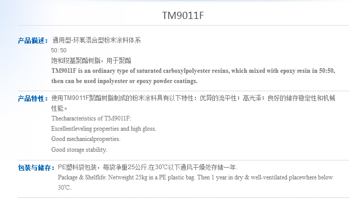 浙江天松 聚酯环氧系列 通用型50:50饱和羧基聚酯树脂 TM9011F