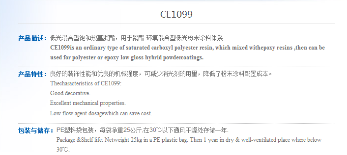 浙江天松 聚酯环氧系列 低光混合型饱和羧基聚酯 CE1099