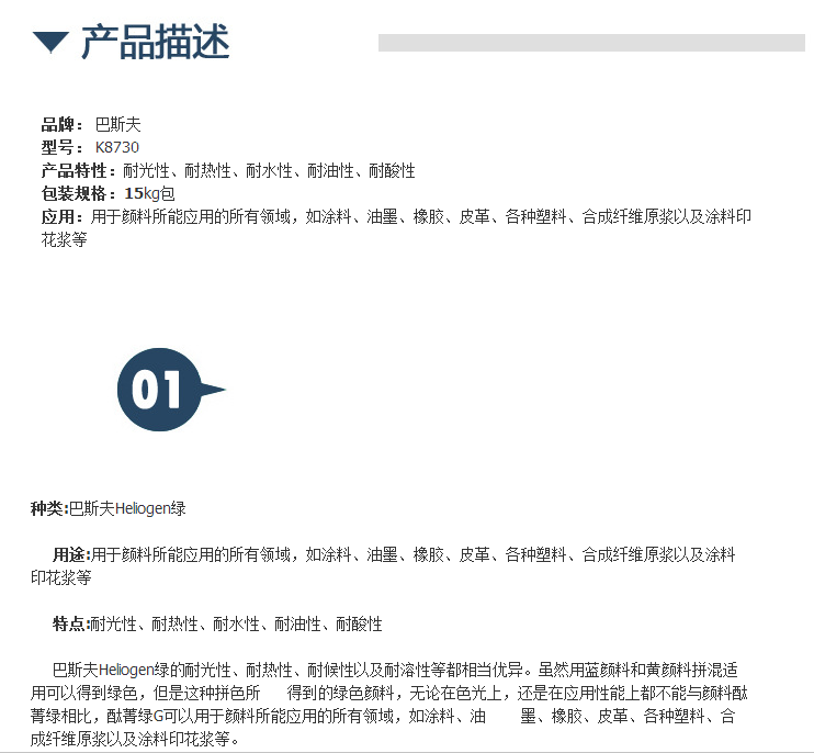 德国巴斯夫有机颜料K8730/汽巴酞青绿G