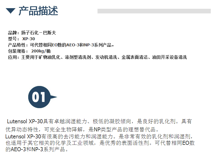 【扬子石化-巴斯夫】非离子表面活性剂 XP-30 工业级 XP-30