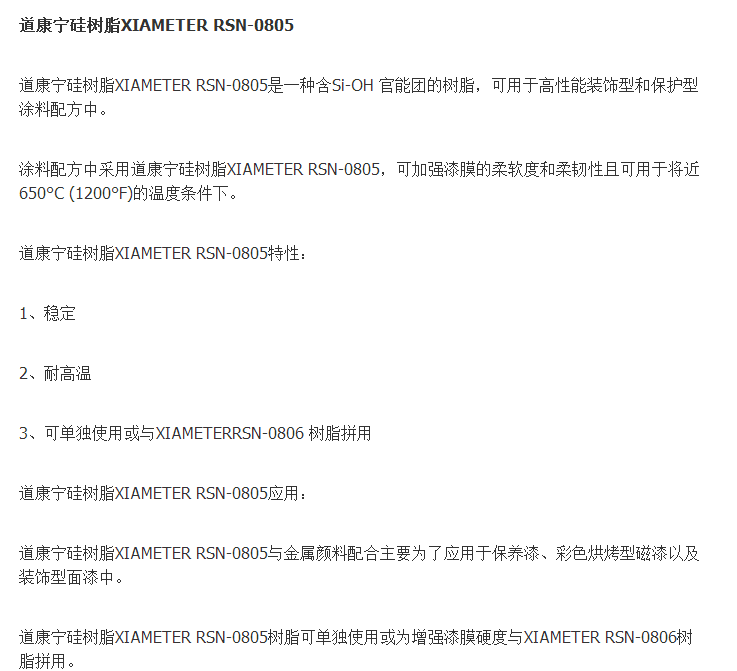 原装进口美国道康宁硅树脂 XIAMETER RSN-0805