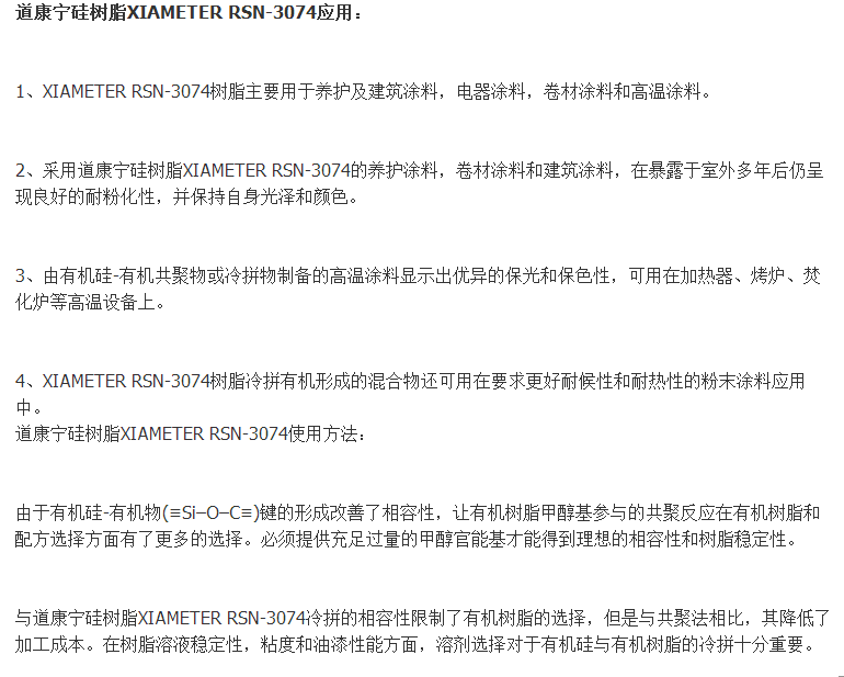 原装正品美国道康宁硅树脂XIAMETER RSN-3074