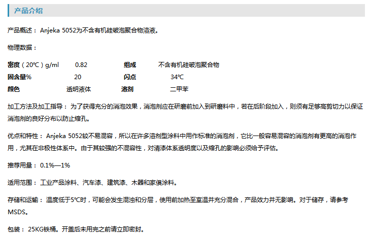 鄂州安吉康不含有机硅消泡剂 Anjeka5052