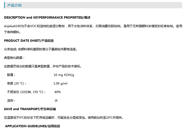 鄂州安吉康水性高分子分散剂 Anjeka6190A