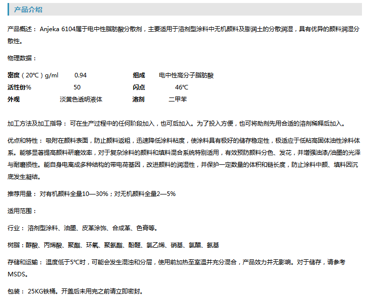 鄂州安吉康电中性盐分散剂 Anjeka6104