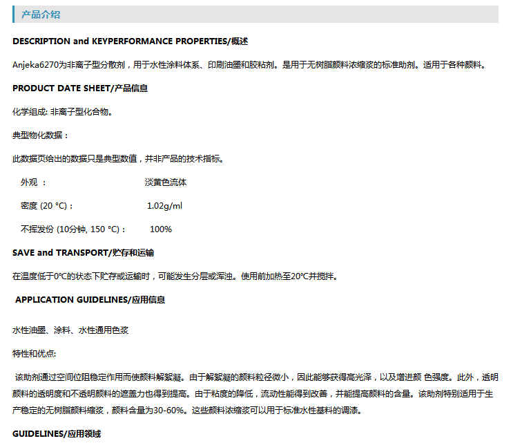 鄂州安吉康水性无树脂色浆分散剂 Anjeka6270