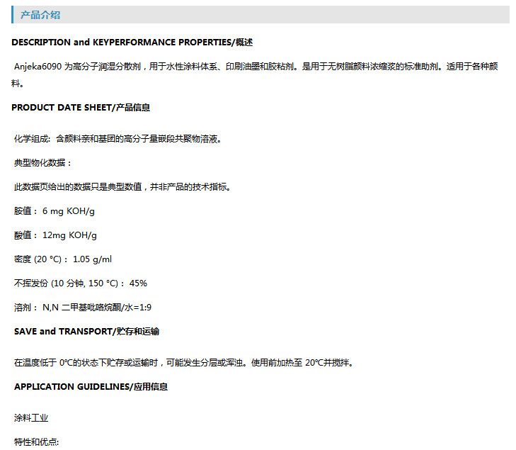 鄂州安吉康水性嵌段型分散剂 Anjeka6090