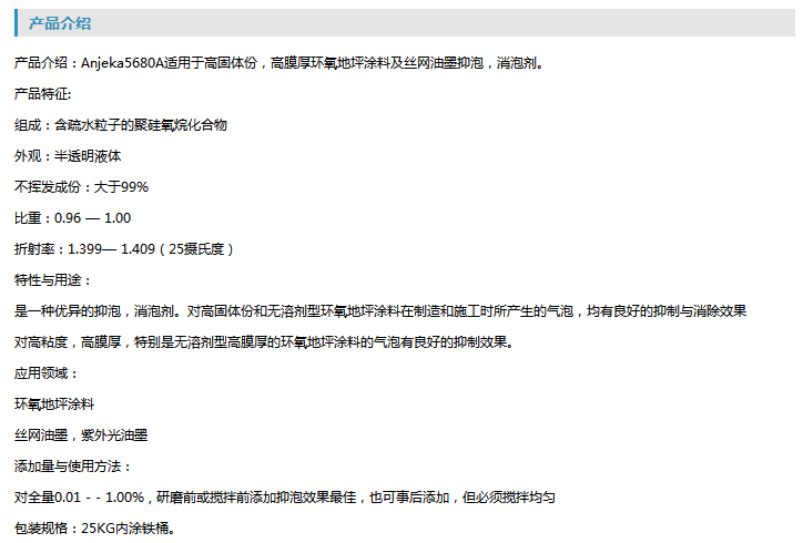 鄂州安吉康有机硅消泡剂 Anjeka5680A