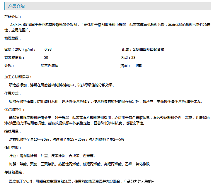 鄂州安吉康溶剂型超分散剂 Anjeka6010