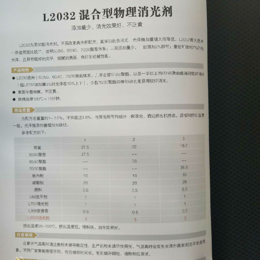 武汉银彩L2032混合型物理消光剂