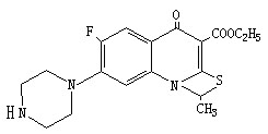 | 产品名称: | 普利沙星中间体 | | 01 | | CAS 号: | 113046-72-3 | | 化 学 名: | 6-7-二氟-1-甲基-4-氧代-4H-[1,3]噻嗪[3,2a]并喹啉-3-羧酸乙酯 6,7-difluoro-1-methyl-4-oxo-4H-[1,3]thiazeto[3,2-a]-3-quinoline carboxylic acid ethyl ester | | 结 构 式: |  | | 02 | | 化 学 名: | 6-氟-1-甲基-4-氧代-7-(1-哌嗪基)-4H-[1,3]噻嗪[3,2a]并喹啉-3-羧酸乙酯 6-fluoro-1-methyl-4-oxo-7-(1-piperazingl)-4H-[1,3]thiazeto[3,2-a]-3-quinoline carboxylic acid ethyl ester | | 结 构 式: |  | | 03 | | 化 学 名: | 化学名:6-氟-1-甲基-4-氧代-7-(1-哌嗪基)-4H-[1-3]噻嗪[3,2a]并喹啉-3-羧酸 6-fluoro-1-methyl-4-oxo-7-(1-piperazinyl)-4H-[1,3]thiazeto[3,2-a]-3-quinoline carboxylic acid | | 结 构 式: |  |