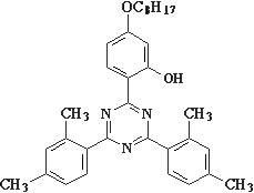 | OCTASORB 1164 | | 类 别: | 三嗪类 | | CAS 号: | 2725-22-6 | | 化 学 名: | 2-(4,6-bis-(2,4-dimethylphenyl)-1,3,5-triazin-2-yl)-5-(octyloxy)-phenol | | 分 子 式: | C33H39N3O2 | | 分 子 量: | 509 | | 结 构 式: |  | | 技术指标: | | 外观Appearance | 淡黄色粉末 | | 含量Assay(HPLC) | ≥98.0% | | 熔点Melting Point(℃) | 88-91℃ | | 挥发份Volatile | ≤0.5% | | 灰份Ash | ≤0.1% | 不溶物Insoluable materials (5g/100ml toluene) | ≤0.5% |