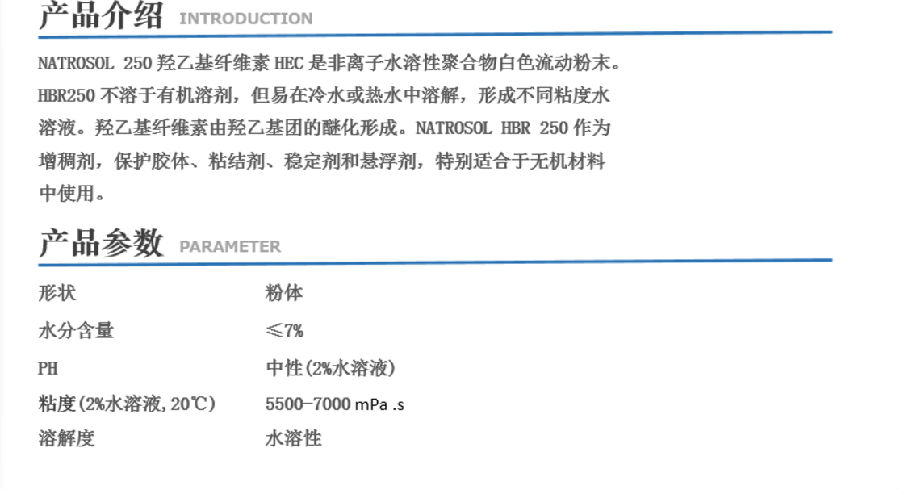 上海以挪士 250 HBR 羟乙基纤维素