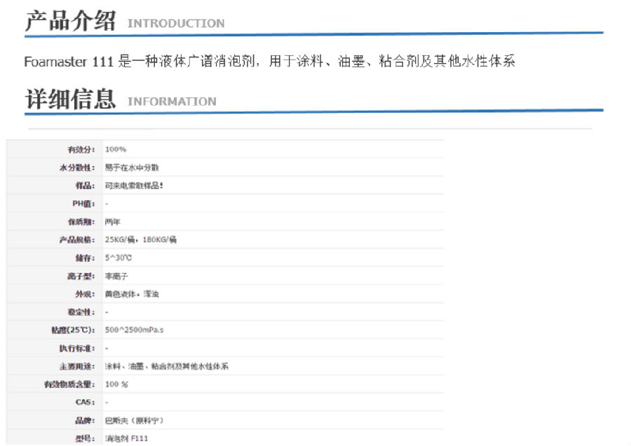 上海以挪士巴斯夫 水性消泡剂F111