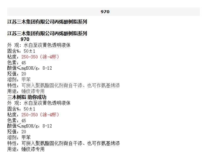 江苏三木 丙烯酸树脂系列 970