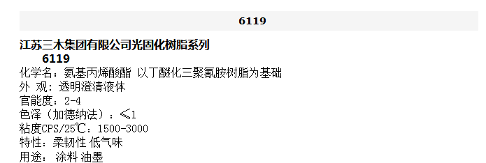江苏三木 光固化树脂系列 氨基丙烯酸酯 6119