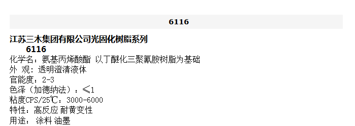 江苏三木 光固化树脂系列 氨基丙烯酸酯 6116
