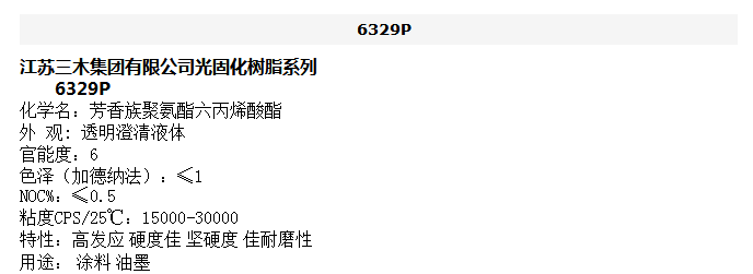 江苏三木 光固化树脂系列 芳香族聚氨酯六丙烯酸酯 6329P