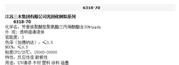 江苏三木 光固化树脂系列 芳香族聚醚型聚氨酯三丙烯酸酯含30%tpg da 6318-70