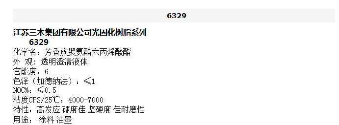 江苏三木 光固化树脂系列 芳香族聚氨酯六丙烯酸酯 6329