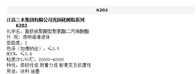江苏三木 光固化树脂系列 脂肪族聚醚型聚氨酯二丙烯酸酯 6202