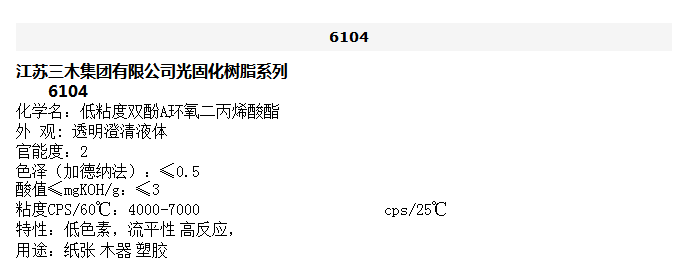 江苏三木 光固化树脂系列 低粘度双酚A环氧二丙烯酸酯 6104
