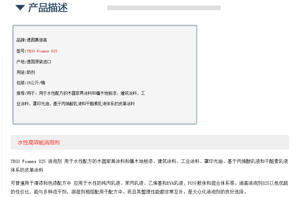 德国迪高TEGO Foamex 825 消泡剂