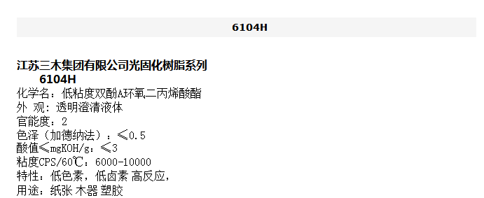 江苏三木 光固化树脂系列 低粘度双酚A环氧二丙烯酸酯 6104H