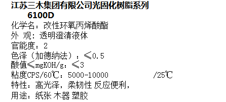 江苏三木 光固化树脂系列 改性环氧丙烯酸酯 6100D