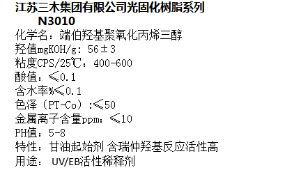 江苏三木 光固化树脂系列 端伯羟基聚氧化丙烯三醇 N3010