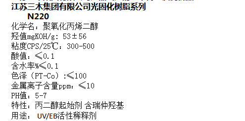 江苏三木 光固化树脂系列 聚氧化丙烯二醇 N220