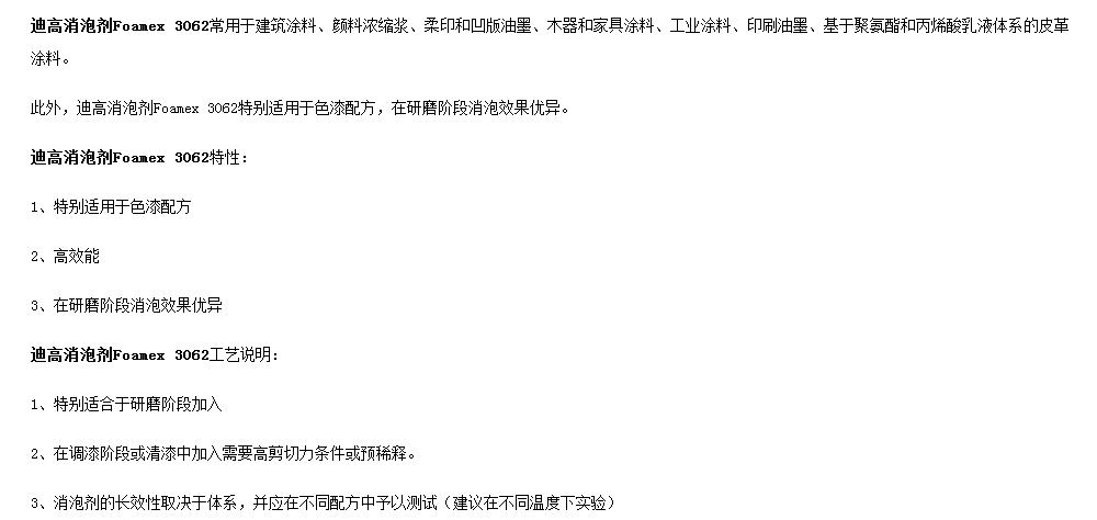 德固赛迪高消泡剂TEGO Foamex 3062