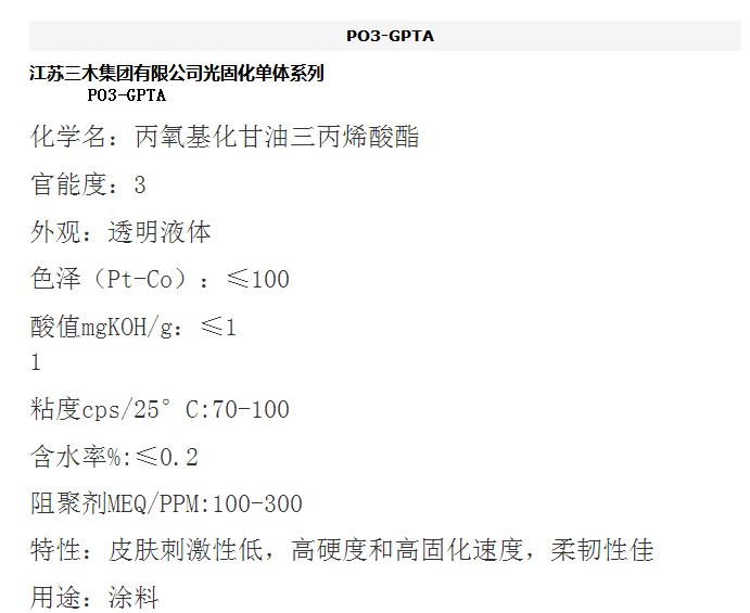 江苏三木 光固化单体系列 PO3-GPTA